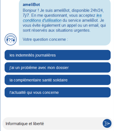 Cliquez dans le Chatbot sur « cliquant ici » une nouvelle page s’ouvre et aller dans exercer les droits informatique et libertés