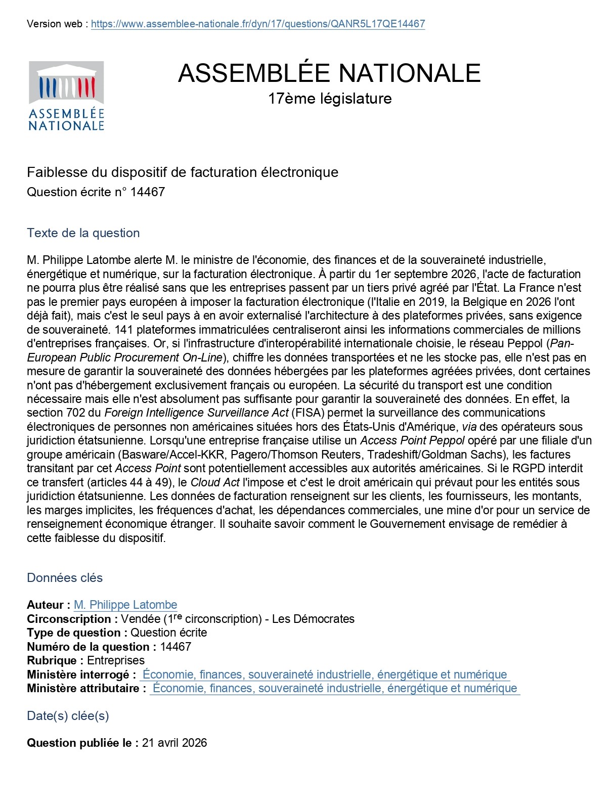 Le député Philippe Latombe alerte le ministre de l'économie, des finances et de la souveraineté industrielle, énergétique et numérique