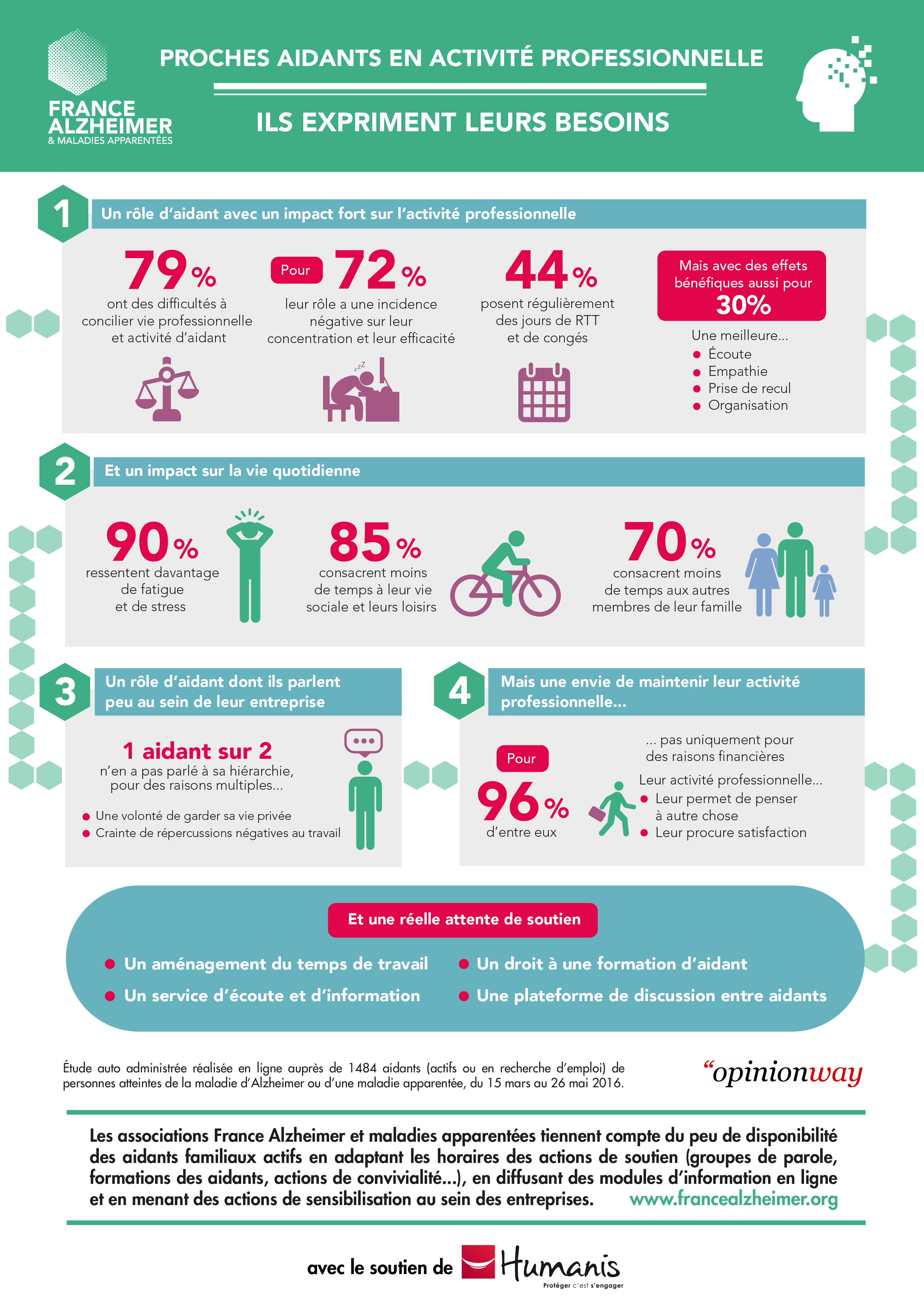 Pour sensibiliser le grand public mais aussi envisager les enjeux de la prise en soin, 300 actions seront organisées partout en France par France Alzheimer et maladies apparentées, notamment le Village Alzheimer à Paris. La 23ème Journée mondiale Alzheimer a cette année pour thématique : « Les proches aidants en activité professionnelle ». Découvrez le sondage France Alzheimer/OpinionWay sur les besoins des aidants actifs (sondage réalisé avec le soutien de Humanis).