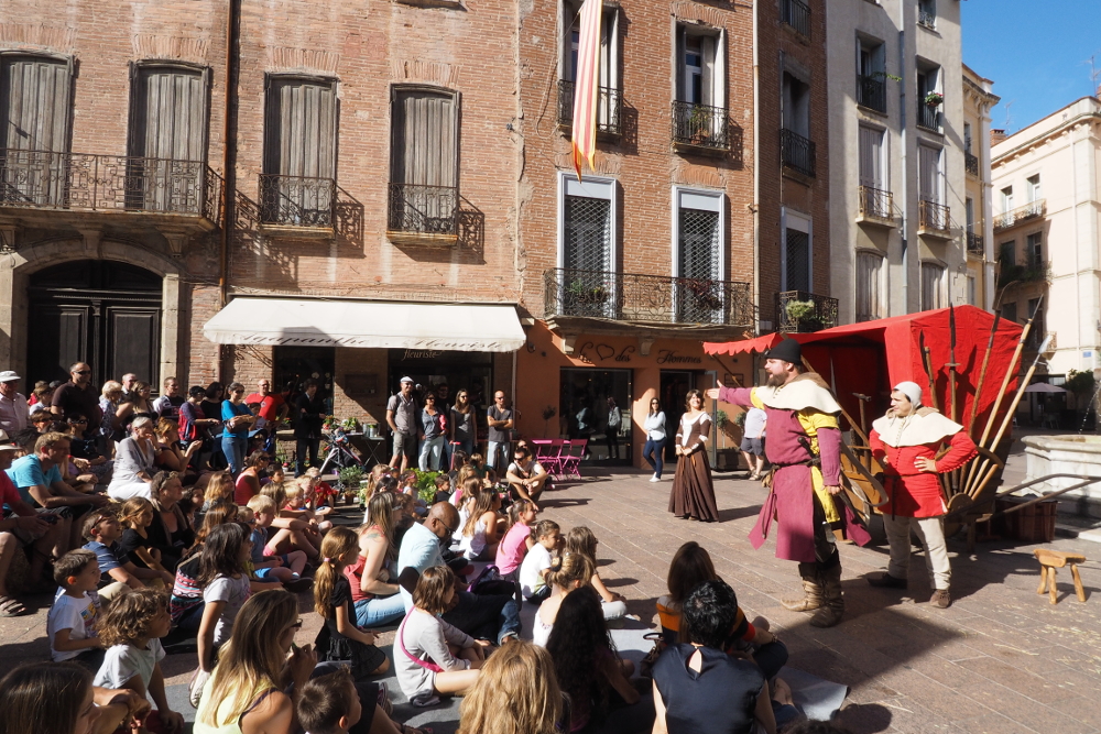 La cité catalane revêt ses habits de Moyen-Âge, le cœur du centre-ville se transforme grâce aux 250 reconstituants qui l’investissent ! L'immersion dans le temps, entre XIIIe et XIVe siècles, débute dès le samedi matin au Campo Santo avec un marché médiéval et un campement. Promenez-vous sur ce marché gourmand et du terroir, participez aux ateliers des métiers d’antan : découvrez les savoir-faire des dentellières, de la forge, du boisselier, de l’herboristerie, du tailleur de pierre, du potier et autre facteur d’arcs….